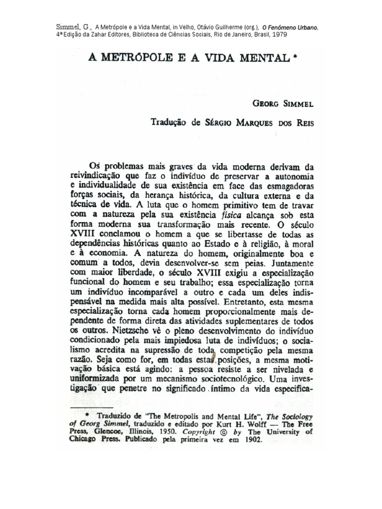 Chamamos de Ecologia o Estudo Dos Seres Vivos · Cv Spanish · Georg Simmel a Metropole e a Vida Mental · -Via Crucis Imágenes de Alta. A metrópole e a vida mental. Georg Simmel ( – ) Um dos temas da sociologia simmeliana foi sua análise da vida urbana. As grandes. Simmel, Georg (), La tragedie de la culture et autres essais, Paris, Editions Rivages. Simmel, Georg (), “A metropole e a vida mental”, en Otavio.