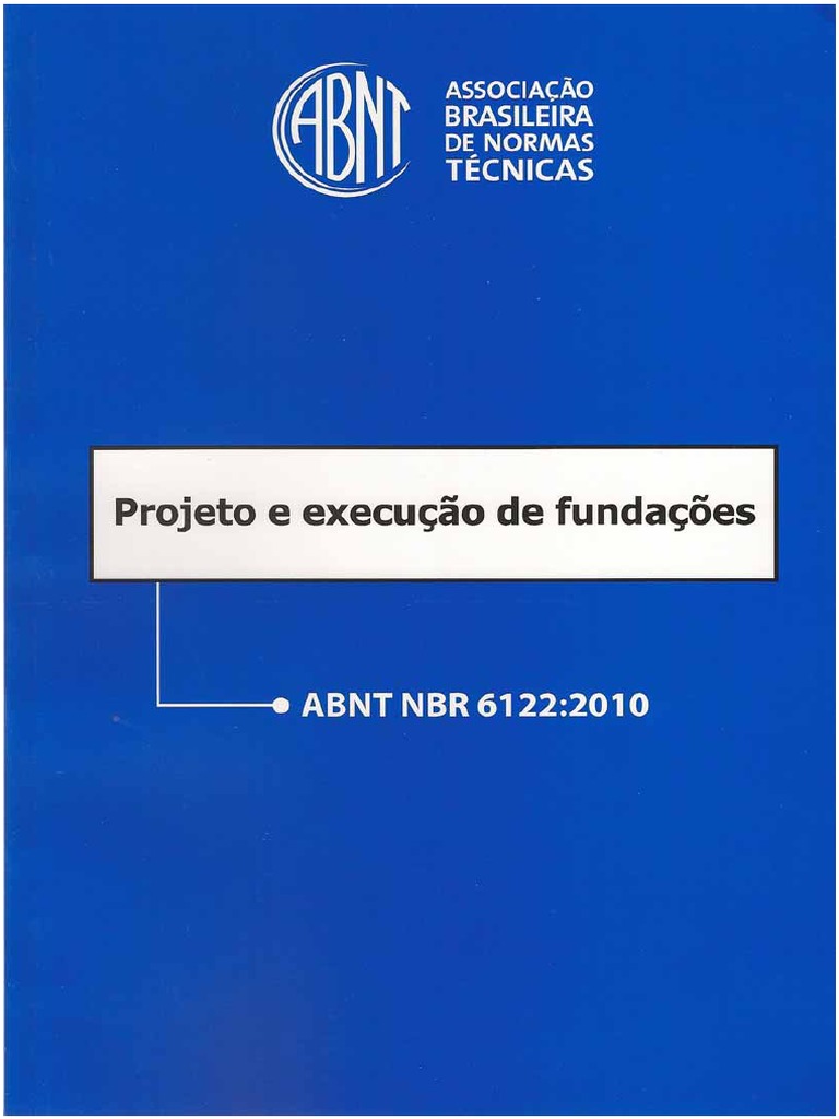 Transcript of ABNT NBR Introdução . v. Prefácio. NBR , Projeto e execução de fundações, ABNT, NBR , Estacas – Provas de carga estática, ABNT, NAYLOR, D. J., Finite Elements and. ABNT NBR – ABNT NBR Design and construction of foundations. Publication date: ; Original language.