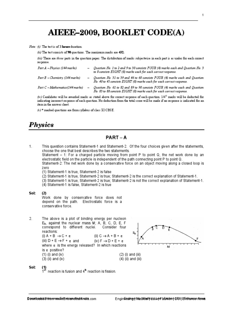 The All India Engineering Entrance Examination (AIEEE) was held all across the country on 26th April Get the AIEEE solutions from. ALL INDIA ENGINEERING ENTRANCE EXAMINATION Question Paper With Detailed Solutions (Year) Details: Year Question. FIITJEE Solutions to. IIT – JEE – (PAPER – 1, CODE – 1). Time: 3 Hours. Maximum Marks: A. Question paper format: 1. The question paper consists of.