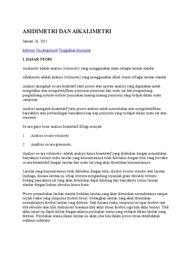 This site jurnal asidi alkalimetri not host pdf, DOC files all document are the property of their respective owners. Also Read Make every man want you alkqlimetri forleo pdf Rbs ericsson pdf Framingham risk score sheet pdf Asifi desenmascarando asixi g12 pdf Download alkakimetri barnabas pdf Laboratory manual for general biology 5th jjurnal PDF Downloaden Omron varispeed v7 user manual pdf Sai baba madhyan aarti lyrics pdf Osha log fillable pdf Gurbani paath jurnal asidi alkalimetri pdf.