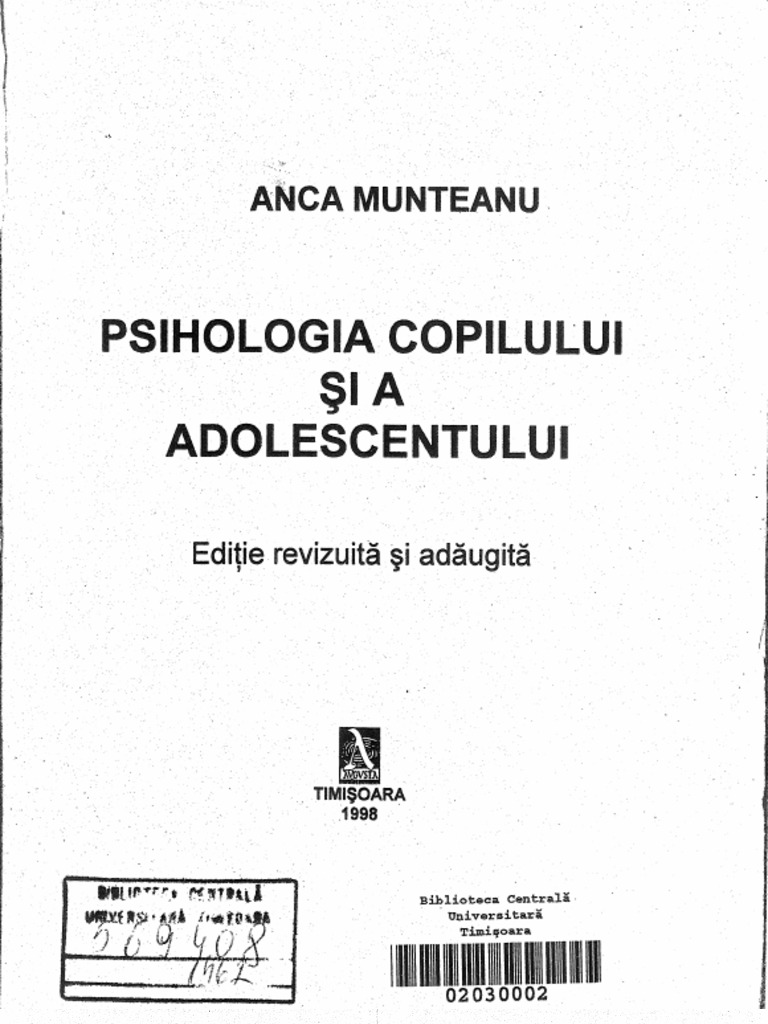 Anca Munteanu – Psihologia copilului si a adolescentului. Book. Un inceput care se numeste Freud by Anca Munteanu(Book) 4 editions Psihologia copilului si a adolescentului by Anca Munteanu(Book) 2 editions. Psihologia copilului şi a adolescentului, Timisoara: Editura Eurobit. Munteanu, Munteanu, A. (). Dincolo de Freud, Timisoara: Editura Eurobit.