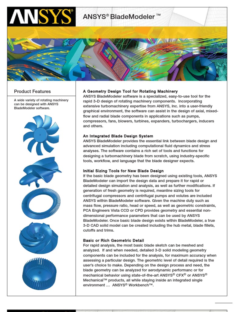 BladeModeler is used to design axial, mixed-flow, and radial blade components in nasys such as pumps, compressors, fans, blowers, turbines, expanders, turbochargers, inducers and more. ANSYS BladeModeler is used to design axial, mixed-flow, and radial blade components in applications such as pumps, compressors, fans, blowers, turbines, expanders, turbochargers, inducers and blademofeler.