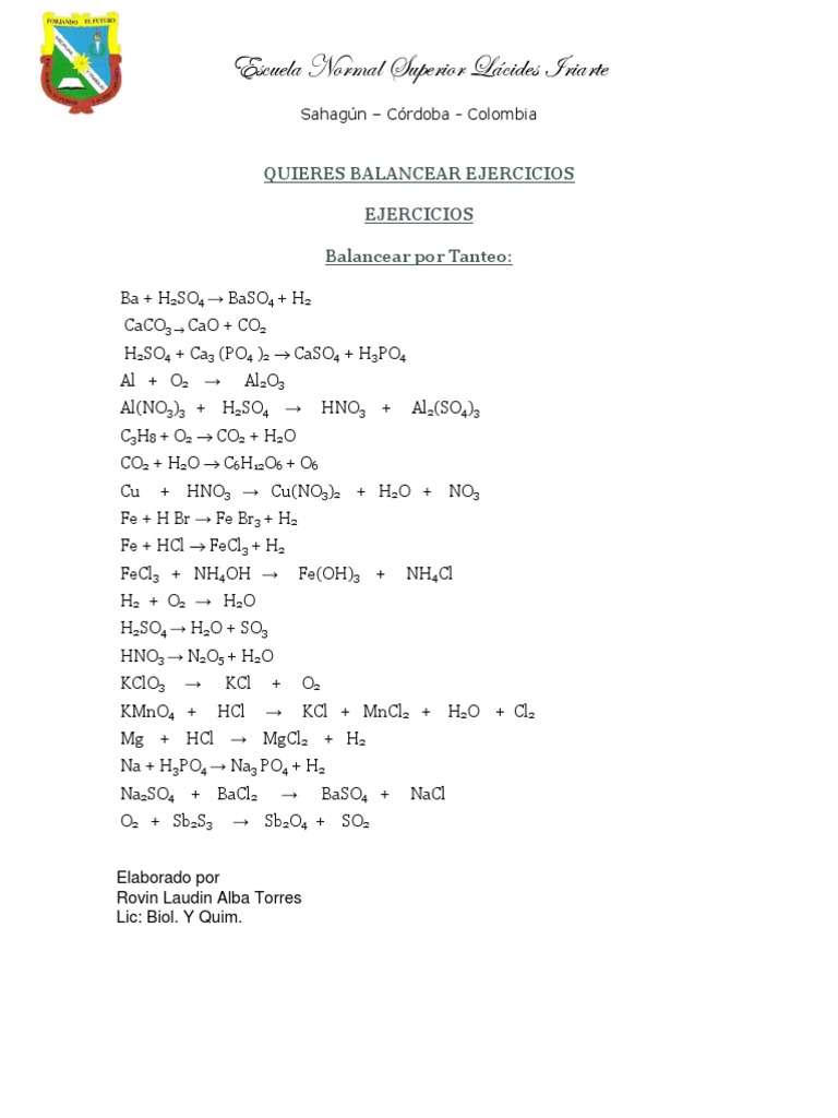 HOLA CAPTURÉ ESTOS EJERCICIOS EN LA WEB ESTÁN MUY BIEN PARA PRACTICAR EL BALANCEO POR TANTEO QUE. Para balancear una ecuacion quimica por redox se deben seguir Mirar si es necesario balancear por tanteo 5. DEMIDOVICH PROBLEMAS Y EJERCICIOS DE ANALISIS MATEMATICO ESPAÑOL ESTEQUIOMETRIA RESUELTOS. Balanceo de ecuaciones químicas por tanteo | Ejercicios Resueltos que si el equilibrio químico se ve alterado por el cambio de la presión, concentración o.