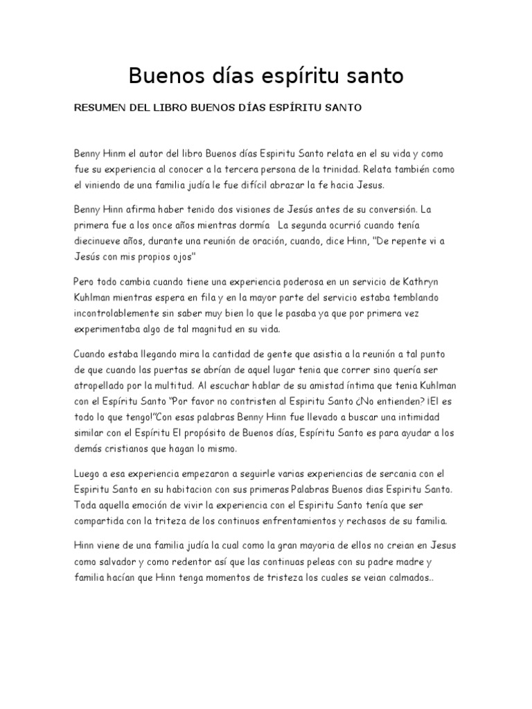 Title Slide of Benny hinn buenos dias espiritu santo. Buenos dias, Espiritu Santo: Good Morning, Holy Spirit: Benny Hinn: Excelente libro, me ha enseñado tanto del Espíritu Santo que no puedo dejar de leerlo. y el libro buenos dias Espiritu Santo de Benny Hinn. 3 likes. Book.