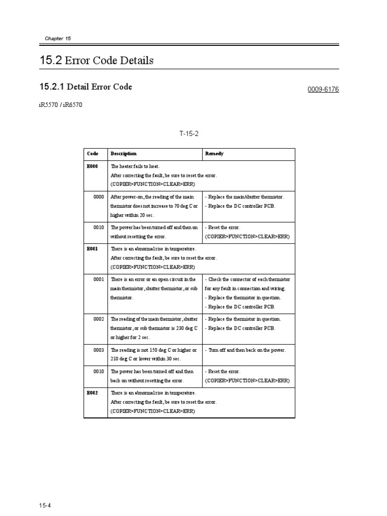 Error Codes List of Error Codes The machine is equipped with a mechanism to run self diagnosis to find out its condition (particularly of its sensors): CPU on. These are all list of error code in Canon iR/iR more to come, i hope your machines works fine and never get error. E Main cause. Canon IR Manual Online: Error Codes, List Of Error Codes. List Of Error Codes The Machine Is Equipped With A Mechanism To Run Self Diagnosis To Find Out Its Condition (particularly Of Its Copier Canon IR Quick Manual.