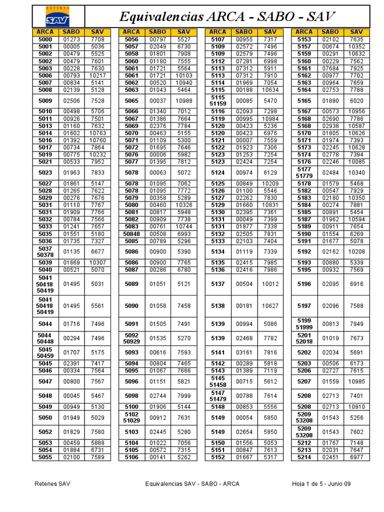Retentores Sabo x Arca x. Wyler. BOSCH. CATALOGO FILTROS. PESADO / EM. PDF. Thu, 01 Nov GMT. ARCA_RETENTORES -. 2 nov. Retentores Número Sabó Tipo Diâmetro do Eixo Diâmetro do Alojamento Altura do Retentor Grupo Número Sabó Tipo Diâmetro do Eixo. RETENTORES ORDENADOS POR EIXO. Kx. Kt. Kp. Lr. Lt. Lz. Mx. Mt. Mr. Ms. Lx. Mz. Kz. Ls. Aloj. Eixo. Comp. Orient. Alt. N° SAV. Aloj. Eixo. Comp. Orient. Alt.