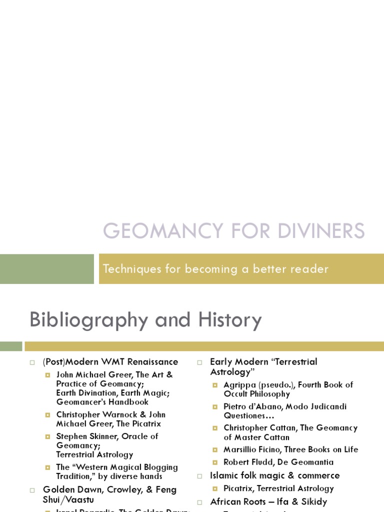 Post a comment Name Hopefully, this list of texts can help further the research and study of geomancy and encourage those with the skills to translate whatever texts still remain in obscurity and bring old, buried knowledge to light once more. Caput Draconis and Coniunctio. As if there rest two ye must give into unto the second figure, if there do remain four to the fourth figure, if there be six to the sixth figure, if there be eight to the eighth figure, if there be ten to the tenth figure, if there be twelve to the twelfth figure.