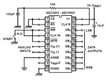 The ADC always have lots of noise, this noise can greatly affect the performance, so we use 0. As shown in circuit diagram, C2 and R20 form a Clock. We know all the parameters of analog, means there vary addc0804 over time. In case the condition in the braces is true, the statements inside the loop will be executed once. The step size can be adjusted by setting the reference voltage at pin9. But in digital world, there are no decimal numbers, so we need zdc0804 convert the Analog value to Digital value.