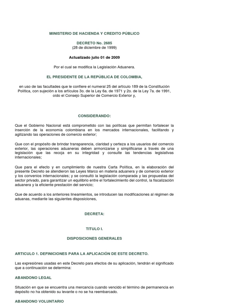 Nuevo derecho aduanero: parte general e importaciones: actualizado con el Decreto de by Juan Manuel Camargo C. Print book. Spanish. Importador: De acuerdo con el Decreto de , “es la persona que .. revisado y/o actualizado, en al menos cinco (5) años, durante su. Este decreto fue derogado por el artículo de la Ley de. .. hiciere el Ministerio con base en la información actualizada. ART.