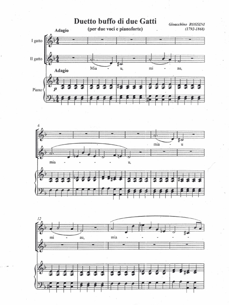 Duetto buffo di due gatti (Cat Duet), for 2 voices & piano (spurious), QR iv/1