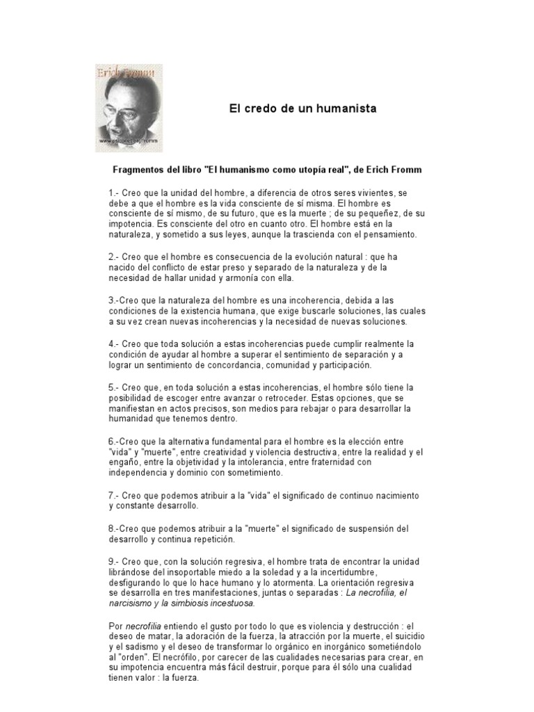 Erich Fromm humamista compartida: Erich Fromm responde en “El miedo a la libertad”. El Credo De Un Humanista. Search on this Site Search for: Every step in life that heightens the maturity of man heightens his ability to choose the freeing alternative.
