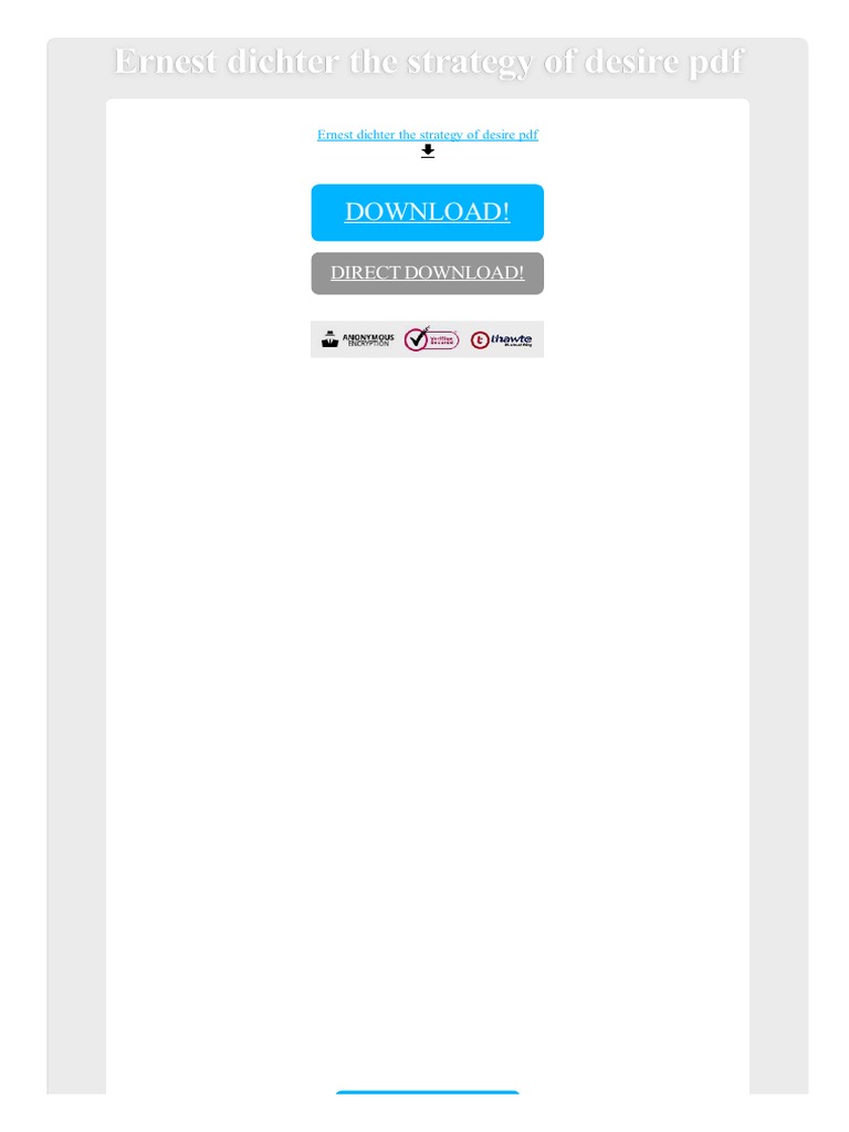 Ernest Dichter was an Austrian-American psychologist and marketing expert known as the “father of motivational research.” Dichter pioneered the application of. Dr. Ernest Dichter is the Director of the Institute of Motivational Research. In this book which is not really readable enough to be popular (in spite of its title) or. Get this from a library! The strategy of desire.. [Ernest Dichter].