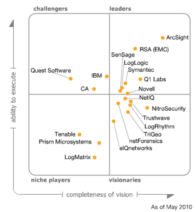 Four vendors are in Leaders quadrant: Novell Sentinel Log Manager simplifies the fulfillment of audit requirements and improves security by streamlining the management of ever-increasing volumes of raw event data used for forensic investigations and compliance reporting. Three vendors are in Visionaries: The Gartner report is available upon quadrany from Splunk. As a result, organizations of any size can use this high performance log data repository magkc aid in faster forensic analysis of IT operations, application development, and cyber security issues, and to simultaneously….