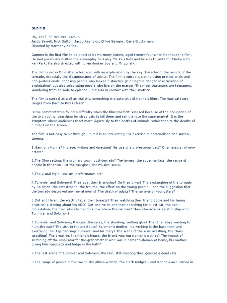 Harmony Korine – Gummo [Script] Lyrics. Gummo [Script]. Peanut, peanut, peanut butter, motherfucker. Tune in, dick, you mess around with me. Collected Screenplays: Jokes, Gummo, Julien, Donkey-boy v. 1 by Korine, Harmony () Paperback [Harmony Korine] on *FREE* shipping on. Only years-old when he directed his extraordinary debut feature Gummo, Harmony Korine has since continued to serve notice that he is the riskiest.
