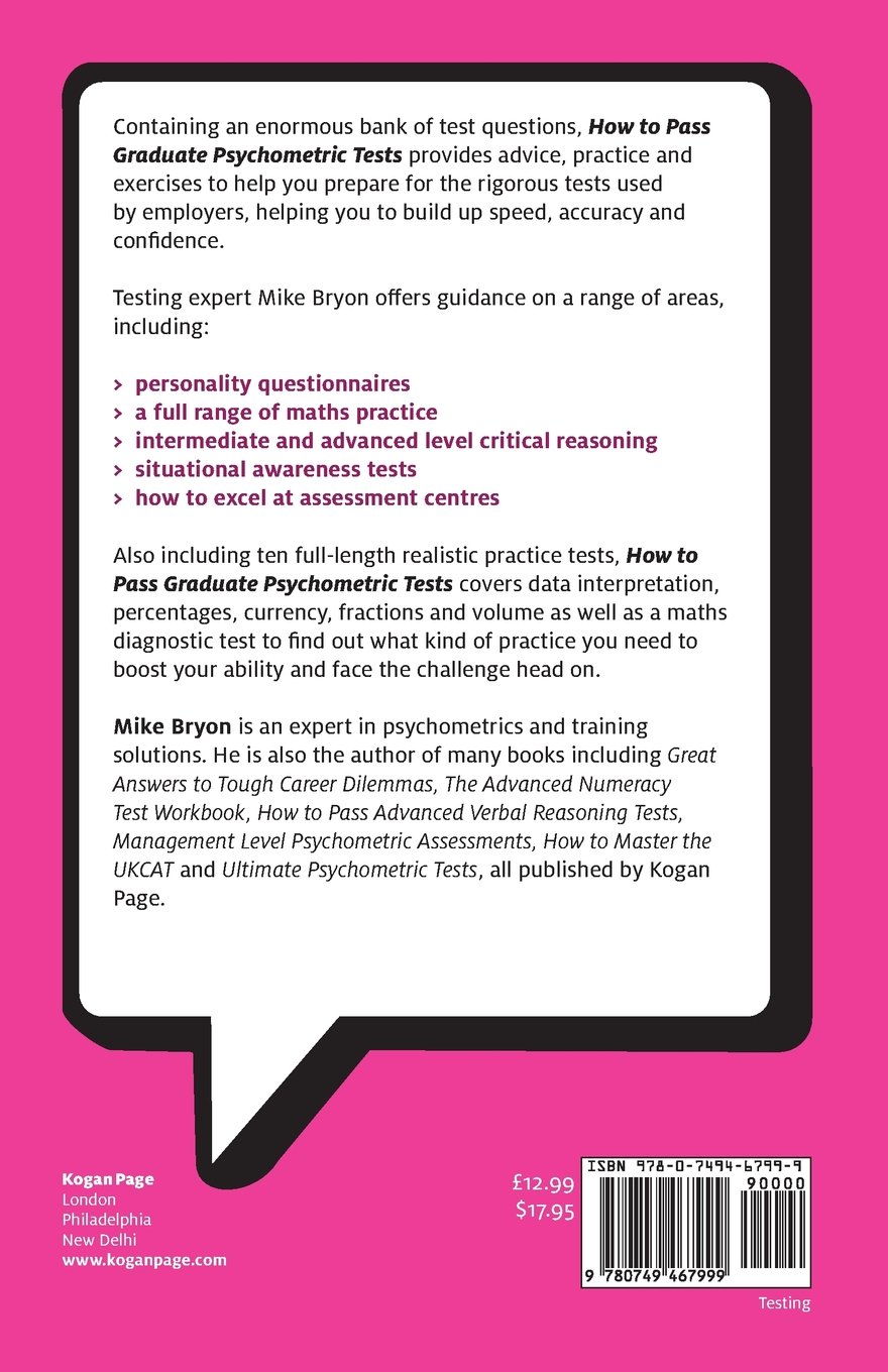 How to Pass Graduate Psychometric Tests. Essential Preparation for Numerical and Verbal Ability Tests Plus Personality Questionnaires. Mike Bryon. How to. How to Pass Graduate Psychometric Tests has 8 ratings and 3 reviews. Layla said: i enjoyed reading it and to Mike Bryon. · Rating details · 8 ratings · 3 . How to Pass Graduate Psychometric Tests provides advice and practice exercises that are relevant to many of the tests used by employers to recruit managers.