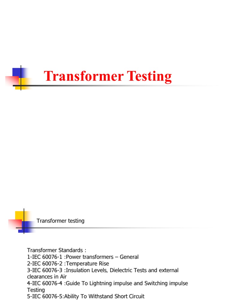 Protection accessories, such as a gas-and-oil-actuated relay and pressure relief device, iiec be mounted on the transformer during the test.
