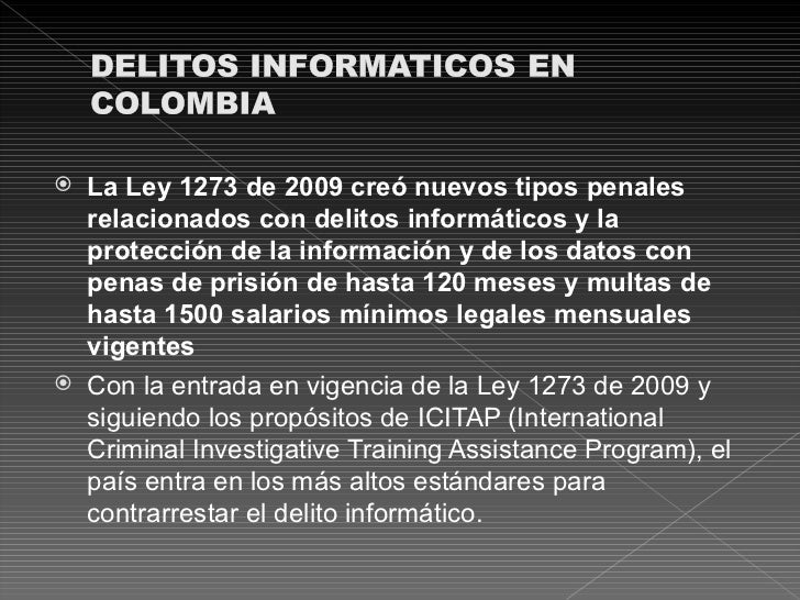 En Colombia el Código Penal estableció en el , la Ley la informáticos se ven obligados a dar largas o dejar estos delitos sin. MANUAL DE DELITO INFORMATICO EN COLOMBIA ANALISIS DOGMATICO DE LA LEY DE [Alberto SUÁREZ SÁNCHEZ] on *FREE *. Quiz LEY DE (Colombia). ley de Fredy Gonzalo Becerra Diaz. Objeto: “De la protección de la información y de los datos”.