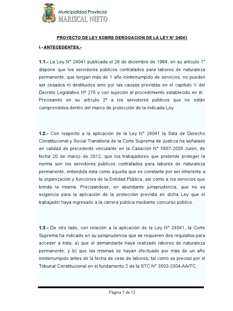 Sharing Options. Share on Facebook, opens a new window; Share on Twitter, opens a new window; Share on LinkedIn; Share by email, opens mail client. relación laboral de acuerdo a la Ley En el mencionado proceso judicial se ha emitido sentencia que reconoce mi condición de trabajador contratado. Los Trabajadores Comprendidos en La Ley Nº y El Proceso Contencioso Administrativo Supra Material. Uploaded by. Vis Tcg · Pliego de Reclamos.